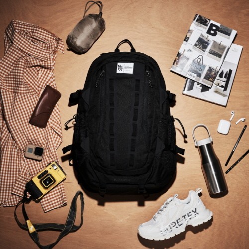 듀오 백팩 역시 친환경 리사이클 원단으로 만든 백팩으로 일상에서 활용도가 높은 디자인으로 만들어졌다. 어깨 끈에 논슬립 패드를 적용해 잘 미끄러지지 않으며 정면 메쉬 포켓 등이 갖추어져 수납이 편리한 것이 장점이다.