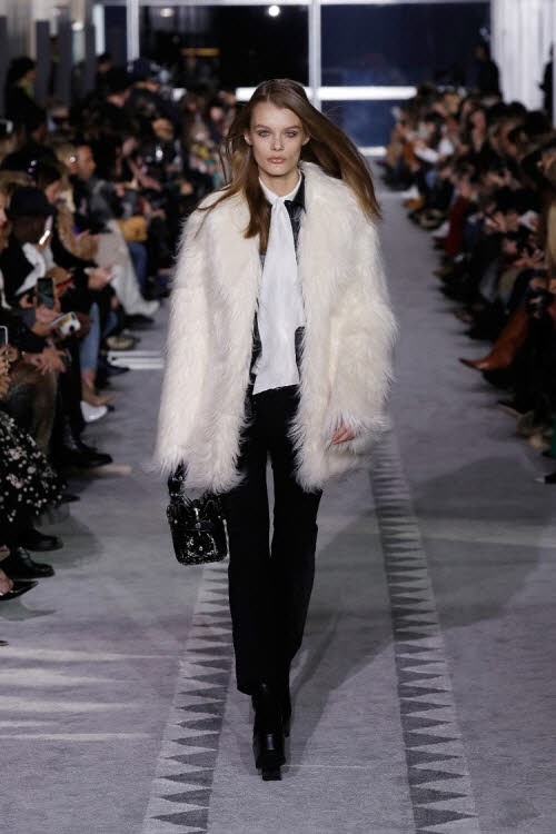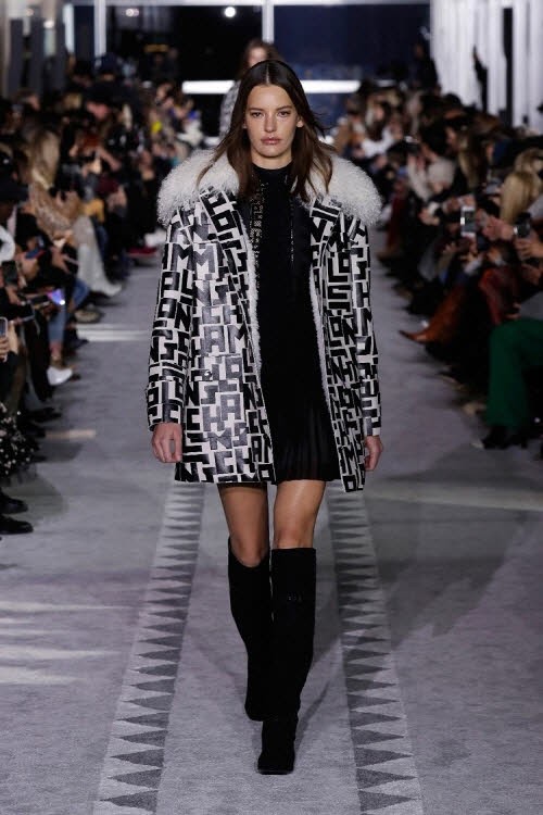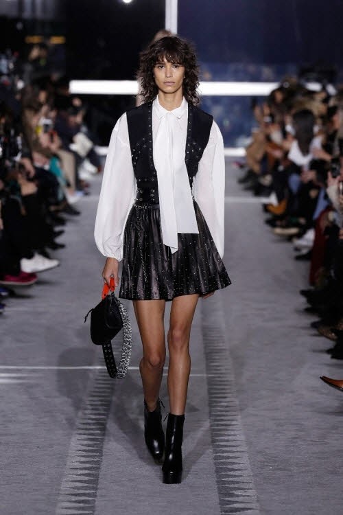 자수가 수놓아진 레이스와 얇은 울 면사로 이루어진 커다란 실크 드레스, 그리고 플리츠 스커트는 런웨이 위에서 파리지엥의 여성스러운 감각을 재현하였다. 이 의상들은 그래픽 프린트나 얼룩말 프린트가 새겨진 검정색 가죽 상의 그리고 구조적인 형태의 코트와 함께 매치되어 뉴욕의 세련된 감성을 보여주었다. 그리고 선명한 은색 스터드로 장식된 리본 장식과 같은 디테일은 락 감성과 엘레강스함을 완벽하게 조화시켰다. 이러한 대조적인 분위기, 텍스처의 믹스매치, 패턴과 실루엣은 각각의 룩에 개성과 역동성을 부여하였다.