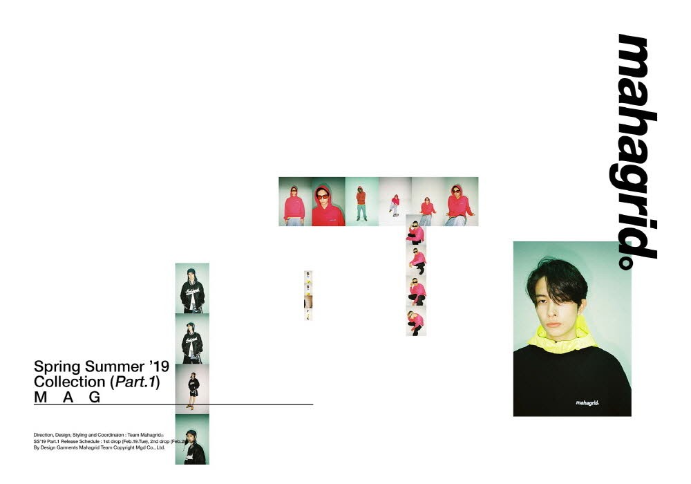 ‘마하그리드’의 19 S/S 컬렉션 테마는 MAG(맥)으로 2000년대 초반 성행했던 Street jack, Samurai magazine, Boon 등의 일본 스트리트 패션 잡지에서 영감을 받았다. 그 당시의 무드와 색감, 스타일링을 현재의 시점에서 어레인지 하여 제안한다.