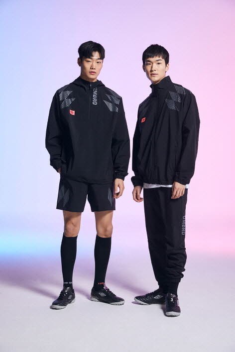 ‘엄브로’의 헤리티지 패턴을 적용한 자켓과 아노락, 팬츠 등으로 구성된 이번 컬렉션은 풋볼 전 워밍업 단계부터 실제 플레이 시에도 착용할 수 있어 활용도가 높다.