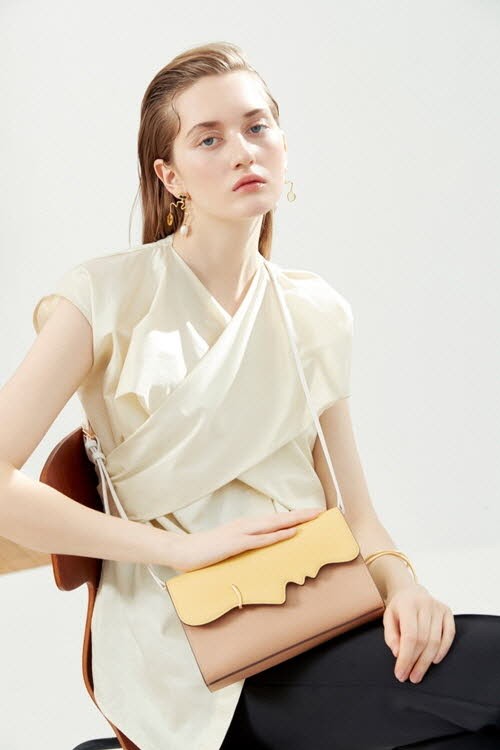 이번 콜라보레이션 라인은 핸드백, 스트랩, 지갑소품 그리고 이어링과 뱅글로 구성되어 있으며 특히 여성의 아름다운 얼굴 곡선과 움직이는 모빌의 이미지를 디자인 포인트로 유니크하지만 부담스럽지 않게 착용이 가능하다.