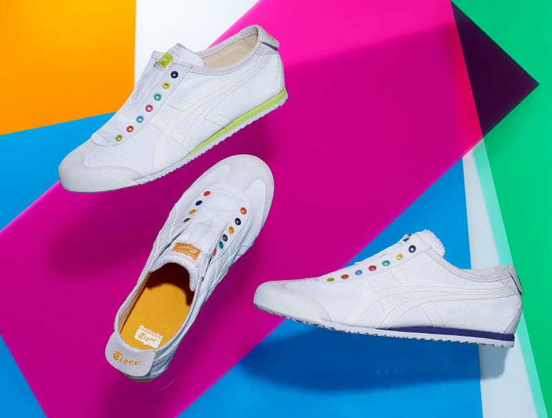 멕시코66 슬립 온(MEXICO 66 SLIP-ON)은 ‘오니츠카타이거’ 대표 모델 멕시코66을 슬립 온 형태로 디자인한 스니커즈로 스트랩을 제거하고 어퍼 패널에 텅을 고정해 심플하고 슬림하다. 비비드한 컬러의 아일렛과 미드솔의 위트 있는 컬러 매치가 매력적인 아이템이다.