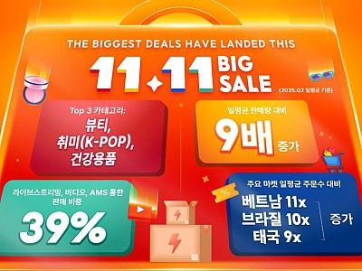 쇼피코리아(대표 권윤아)가 쇼피 ‘11.11 메가데이’에서 한국 셀러 판매량이 일평균 대비 9배 증가했다고 밝혔다. ‘11.11 메가데이’는 매월 월과 일이 같은 날 진행되는 쇼피의 대표 할인 행사 중에서도 연중 최…