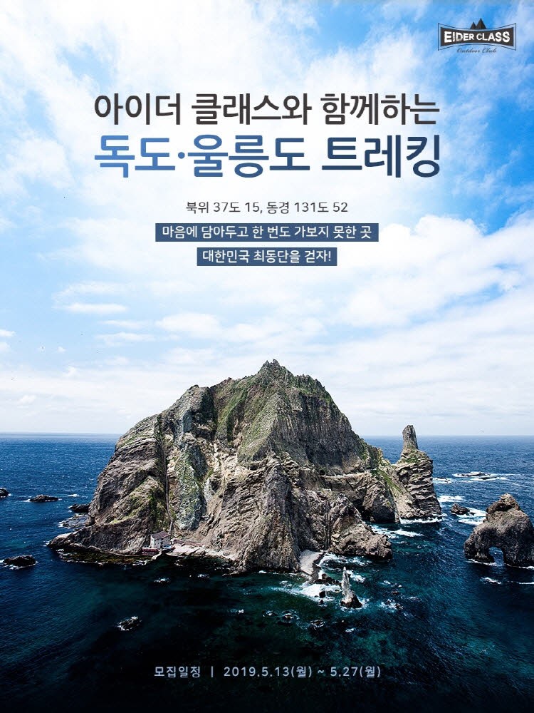 프랑스 아웃도어 브랜드 ‘아이더’가 전문 강사진과 함께 다양한 아웃도어 스포츠를 체험해 볼 수 있는 ‘아이더클래스 2019’의 일환으로 독도 울릉도 트레킹 클래스를 진행한다.