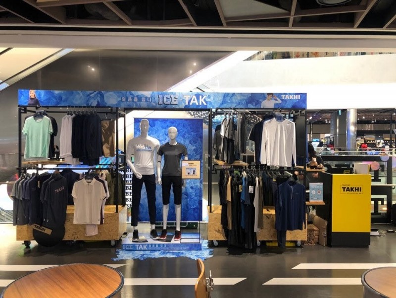 이번에 완판한 아이스탁 라인은 총 10개 상품으로 구성돼 있는데 메인 상품인 UV 아이스탁 티셔츠는 이곳 매장에서 초두 물량 500장을 완판하고 리오더에 들어가기도 했다.