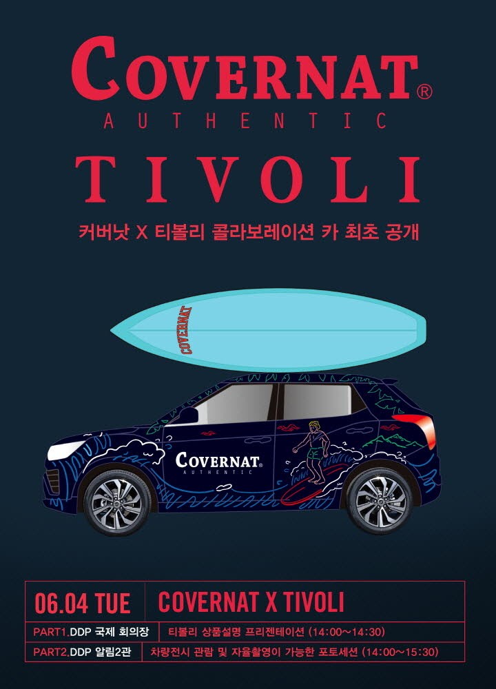 ‘커버낫 X 쌍용 티볼리’ 콜라보레이션 차량은 오는 6월4일 DDP에서 처음 공개될 예정이다.