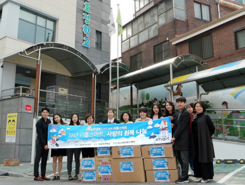 프리미엄 유치원복 브랜드 ‘리틀스마트’가 지난 9일 서울 효정학교에 원복 지원 행사를 실시했다.