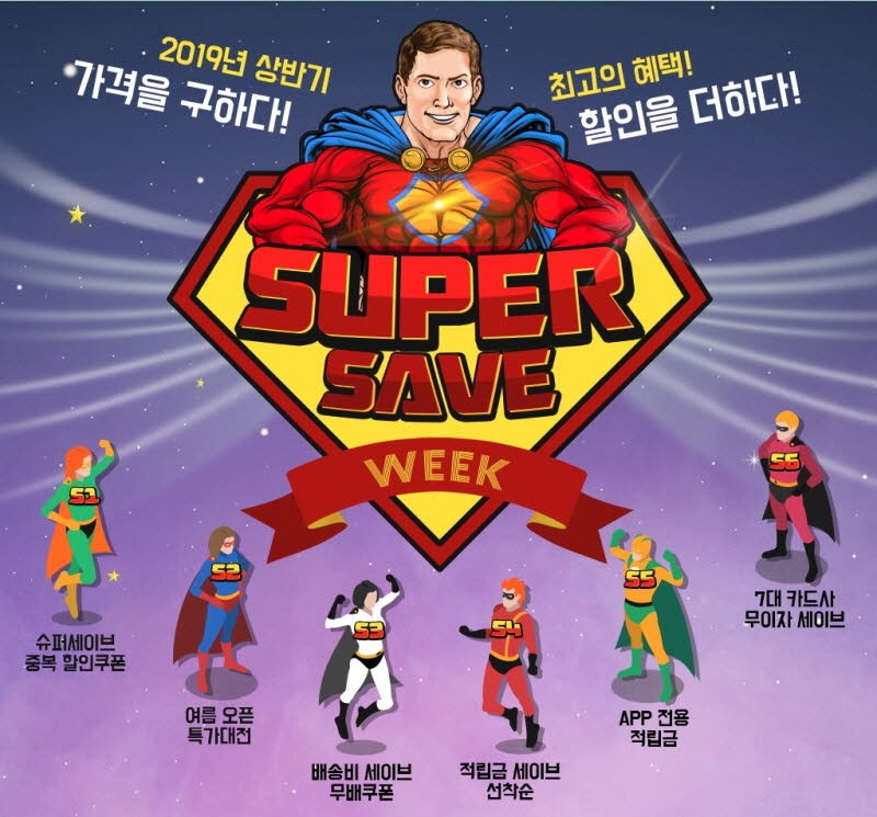 이번 ‘슈퍼세이브 위크’ 기간에는 3종 슈퍼세이브 쿠폰, 여름 상품 오픈 특가 대전, 무료배송 쿠폰, 선착순 추가 적립금 증정, APP 쇼핑지원금 증정 등의 스페셜 할인 혜택이 주어진다.