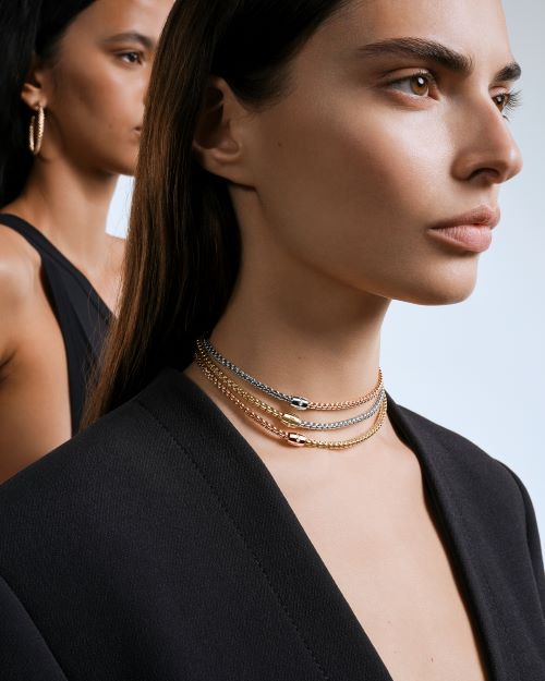 한편 일상의 럭셔리를 위한 파인 주얼리를 선보이는 ‘포페’의 링, 브레이슬릿, 네크리스는 여러 제품을 조합하고 레이어링하여 조화롭게 연출할 수 있는 디자인으로 기존의 패션이나 성별, 시대의 한계를 뛰어넘는 유니섹스 컨셉을 지향한다. 특히 모든 제품 카테고리에 사용되는 플렉스잇 기술은 특허를 받은 ‘포페’의 혁신적인 기술력으로 다른 소재를 사용하지 않고 오로지 골드로만 신축성 있는 메쉬를 제작하는 유일 무이한 테크닉을 보여준다. 이는 메쉬 직조 디자인에 미세한 18캐럿 골드 스프링을 통합하는 특허 받은 플렉스잇 시스템으로 우아하면서도 아이코닉한 유연성, 비교할 수 없는 부드러운 착용감을 부여한다는 점이 특징이다.