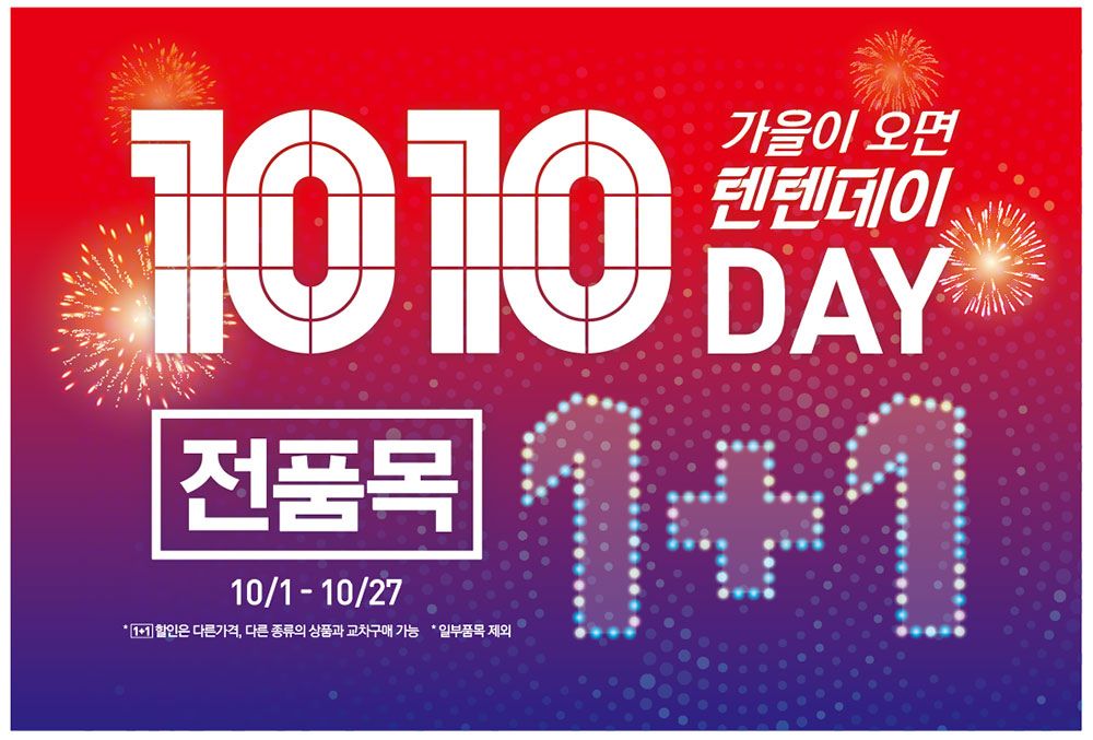 10월 1일부터 27일까지 진행되는 2024 텐텐데이는 ‘탑텐’과 ‘탑텐키즈’ 연중 최대 규모의 프로모션으로 시즌 베스트셀러 포함 전품목 1+1 혜택으로 만나볼 수 있다.