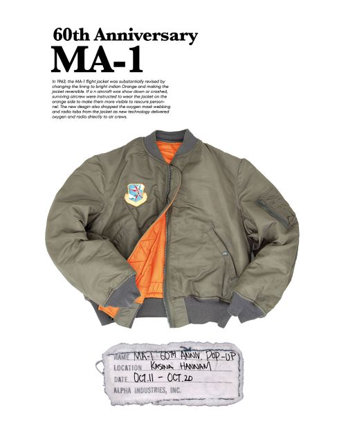 밀리터리 캐주얼 브랜드 ‘알파 인더스트리’가 MA-1 재킷의 60주년을 기념한 팝업스토어를 10월 11일부터 카시나 한남점에서 진행한다.