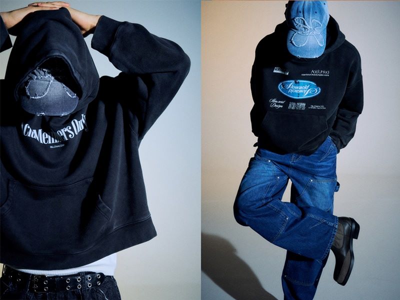후디진호는 빈티지한 스트릿 스타일링으로 큰 사랑을 받는 인플루언서로 이번 기획전에서는 후디진호의 평소 스타일을 엿볼 수 있는 ‘슬로우애시드’의 신제품들로 이루어져 있다.