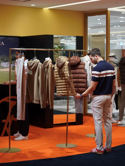 이번 팝업 공간은 단순한 제품 진열을 넘어 ‘경험하는 럭셔리 골프웨어’라는 콘셉트로 기획됐다. 매장 중앙에는 브랜드 시그니처 컬러인 오렌지와 대비되는 컬러를 활용한 동선을 구성해 FP 컬렉션을 감각적으로 감상할 수 있도록 했으며 매장 안쪽에는 퍼팅 레슨 체험 공간과 브랜드 무드를 담은 포토존을 마련해 고객들이 ‘필드와 도시를 잇는 특별한 순간’을 직접 경험할 수 있도록 했다.