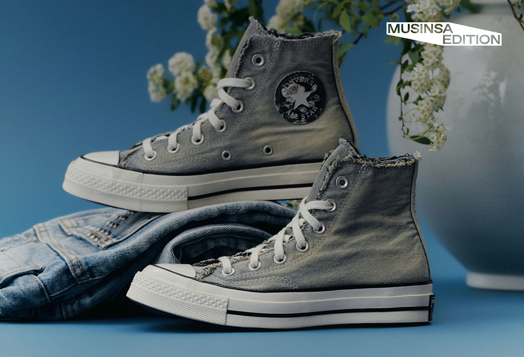 핵심 아이템인 ‘척 70 페이디드 데님’은 전통과 현대의 조화를 시각적으로 구현했다. ‘컨버스’의 상징인 ‘척 70’ 실루엣에 빈티지 가공을 거친 디스트로이드 데님 소재를 적용해 착용자의 습관에 따라 자연스럽게 변화하는 에이징 효과를 극대화했다. 디자인 디테일에는 한국 전통 공예에서 영감을 받은 자개 장식과 전통 매듭 요소를 가미해 고전적인 아름다움과 현대적인 스트릿 감성을 절묘하게 결합했다.