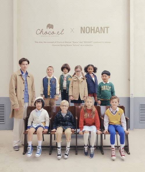 이번 프로젝트는 스쿨에서의 에피소드를 ‘노앙’의 시그니처 스타일과 ‘초코엘’만의 감성으로 재해석해 옐로, 네이비, 그린을 베이스 컬러로 스트라이프와 체크 패턴의 감각적 레이어드가 돋보이며 LONELY를 LOVELY로 바꾼 위트 있는 타이포 아트웍이 스트릿 무드를 더한다.