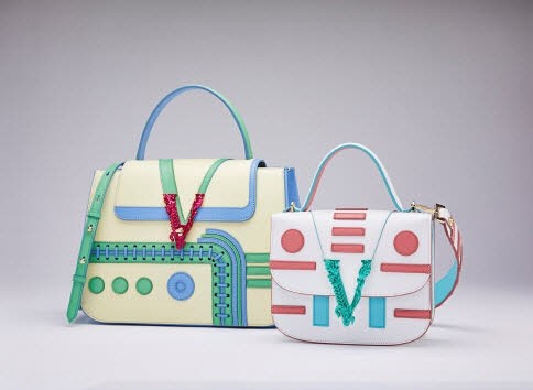이 유니크한 가구 작품들과 함께 사샤 비코프는 ‘베르사체’ 마이애미 부티크에서만 구입할 수 있는 한정판 버투스백 두 가지를 디자인했다. 두 개의 버투스백은 사샤 비코프가 Ocean Drive에서 가장 좋아하는 빌딩에서 영감을 받아 제작되었으며 파스텔 톤의 컬러감을 특징으로 한다. 녹색과 빨간색으로 칠해진 V 로고는 South Beach를 밝히는 네온 라이트를 연상시키며, 부드러운 양가죽으로 제작된 가방 안감에는 푸오리 살로네에서 선보였던 카펫의 패턴이 프린트 되어 있다.