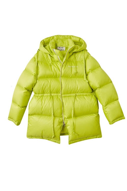 아크네 스튜디오는 풍성한 볼륨감이 돋보이는 오버사이즈 숏 다운 점퍼들을 선보였다. 허리 아래까지 내려오는 중간 기장으로 편안하게 착용 가능하며 허리 부분 스트링으로 라인을 강조해 또 다른 스타일을 연출할 수 있다. 가슴의 브랜드 로고가 브랜드 정체성을 드러내며 네온 옐로우부터 카키, 레드, 블랙 등의 색상이 특징적이다.