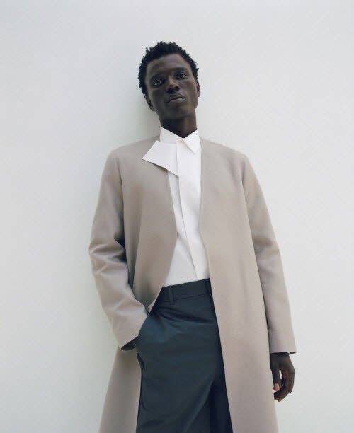 미니멀한 로케이션 덕분에 자연 에크루와 부드러운 뉴트럴 컬러, 인더스트리얼한 라이트 그레이 등을 바탕으로 밝은 금속성 청색, 강렬한 레드와 인디고 블루를 액센트 컬러로 한 컬렉션의 컬러 팔렛트가 돋보인다.