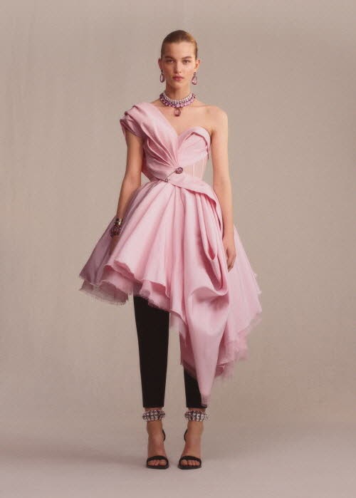 또한 매 컬렉션에 영향을 미치고 있는 펑크는 이번 시즌에서는 풀린 밑단을 그대로 둔 디테일이 더해진 솜사탕 빛 컬러의 아름다운 드레스로 재 탄생해 더욱 자유로운 분위기를 자아냈다.