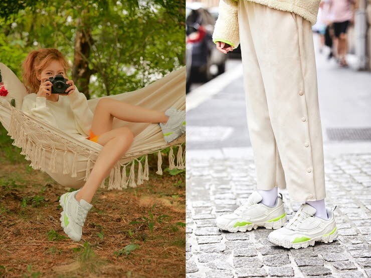 ‘푸마’는 국내 앰배서더 현아 화보 공개와 함께 남녀공용의 트레일폭스를 출시했다. 트레일폭스는 2000년대 초반 선보인 트레일화 컨셉의 어글리슈즈로 현대적인 실루엣과 디테일을 가미했다. 트레일화에서 볼 수 있었던 뾰족한 밑창에 벌키한 무드의 디자인이 특징이다. 어느 옷차림에도 두루 어울릴 수 있는 군더더기 없는 화이트 컬러에 네온컬러로 포인트를 주어 베이직하면서도 포인트 컬러를 살린 데일리 아이템으로 활용하기에 좋다.