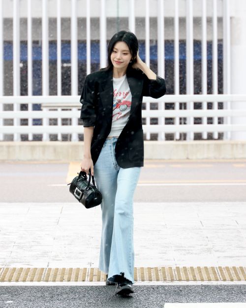 이날 예지는 캐주얼하면서도 스타일리시한 공항패션을 연출했다. 블랙 재킷과 프린팅 티셔츠를 매치해 편안하면서도 감각적인 무드를 연출했으며 여기에 연청 데님 팬츠를 더해 자연스럽고 트렌디한 분위기를 완성했다. 특히 ‘로저 비비에’의 벨 비비에 미니 볼링백을 포인트 아이템으로 선택해 시크한 감성을 더했으며 비브 온더 런 트레키 스니커즈로 활동적인 스타일링을 강조했다.