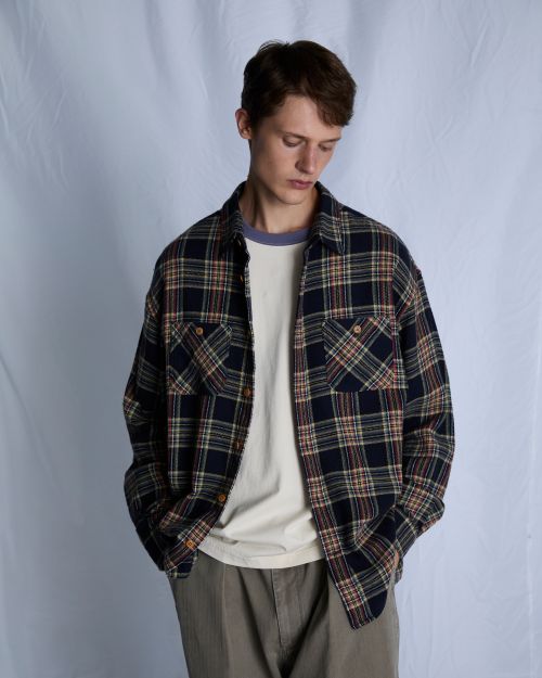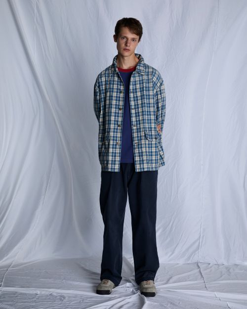 가장 주목할 만한 초어 재킷은 인디고 체크와 올리브 두 가지 컬러로 제작되었으며 워싱과 페이딩을 거쳐 깊이 있는 색감과 빈티지한 질감을 구현했다. 트러커 셔츠는 코튼과 실크 혼방 원단에 노멀 워싱을 적용해 부드럽고 가벼운 착용감을 더했고 퍼티그 팬츠와 티셔츠, 볼캡은 절제된 디테일로 전체 구성에 균형감을 부여한다.