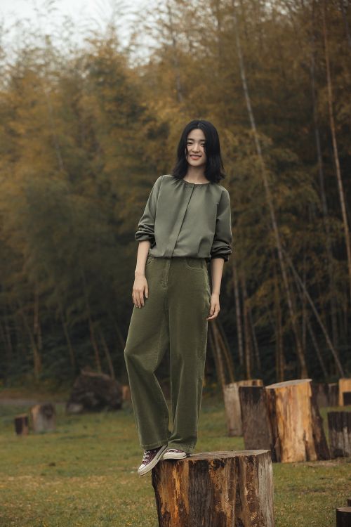 레드 컬러 케이블 스웨터와 부드럽게 감싸는 핑크 스웨터, 깊은 분위기를 전하는 카키 톤온톤 스타일링으로 자연과 어우러진 차분한 무드를 완성했다.
