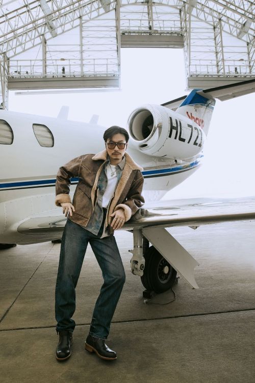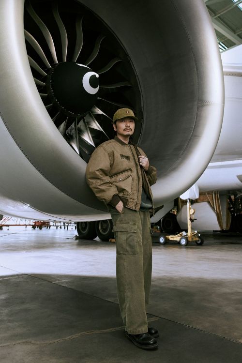 또 대형 프로펠러 앞에서 포즈를 취한 이동휘는 ‘버커루’만의 차별화된 워싱 기법과 디테일이 더해진 항공 점퍼와 카고 팬츠를 매치해 감각적인 스타일링을 완성했다.