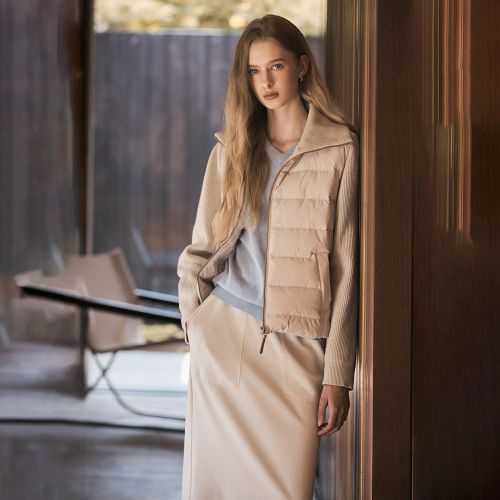‘니트패딩 경량재킷’과 ‘니트패딩 경량베스트’는 두텁게 편직된 니트 카라가 포인트다. 지퍼를 끝까지 올려 목을 감싸는 연출과 카라를 오픈해 경쾌하게 착용하는 두 가지 스타일링이 가능하다.