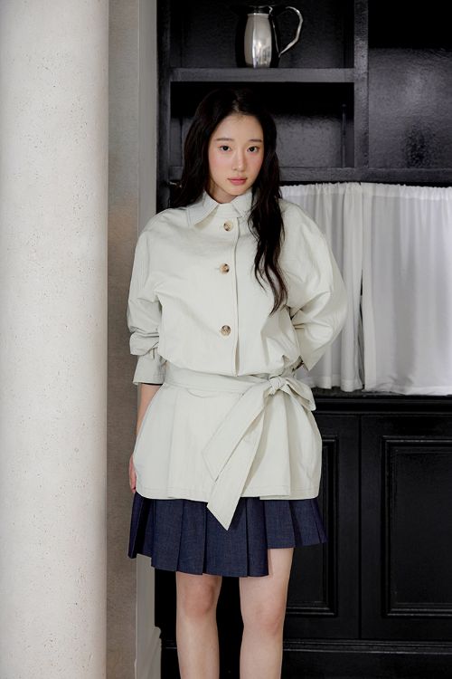 바스락거리는 나일론 소재의 ‘로우 타이드 하프 트렌치’ 코트는 미디 기장으로 캐주얼하고 편안하게 착용하기 좋고 허리 벨트로 다양한 실루엣을 연출할 수 있다.