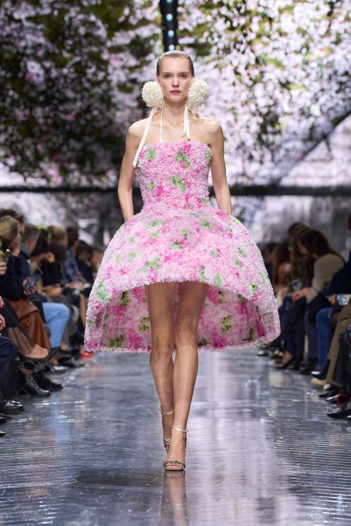 섬세한 실크 재단과 자수, 층층이 쌓인 쉬폰과 오간자, 꾸뛰르 영역으로 확장된 니트웨어는 디올 하우스의 언어를 한층 확장한다.
