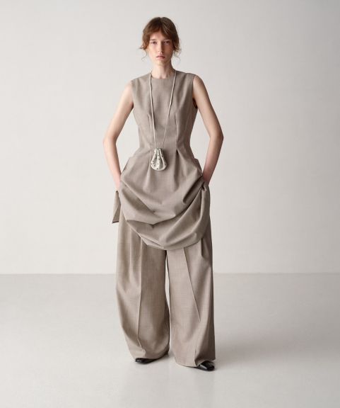 자연의 반복되는 대칭, 유기적 곡선, 구조적 리듬을 재해석한 이번 컬렉션은 잔잔한 조직으로 고급스러움을 더한 오버핏 트렌치코트, 깔끔한 실루엣의 블루종 집업 아우터, 조직감이 돋보이는 리넨 재킷, 감각적 스타일링이 가능한 랩 디자인 블라우스, 구조적 라인의 원피스 등으로 구성되어 있다.