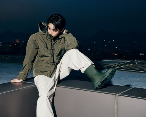 마지막 착장은 ‘오리지날 유틸리티 웨더 자켓’과 ‘다운포어 숏 레인부츠’를 활용해 야경과 어우러지는 차분한 톤온톤 스타일로 깊이 있는 분위기를 연출했다.