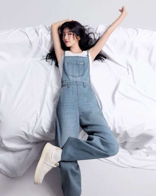 화이트 배경 위에서 데님과 수지의 조합만으로 완성된 이번 캠페인은 미니멀한 연출을 통해 데님 본연의 매력을 강조한다.