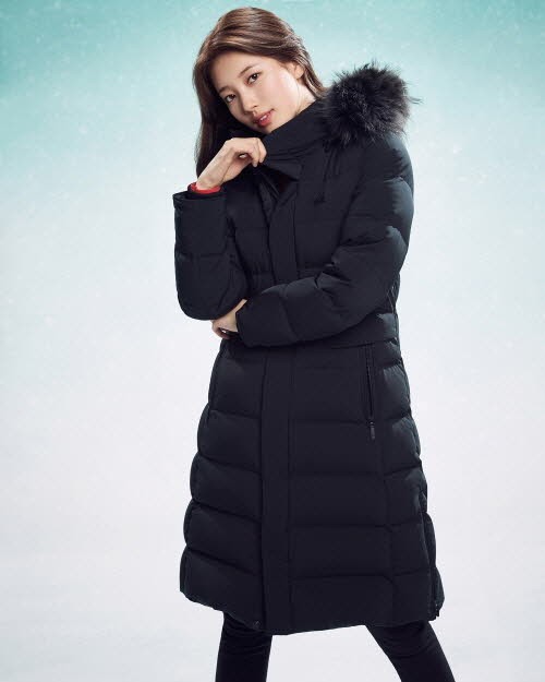 허리 라인을 잡아주는 라인으로 슬림한 핏감을 적용해 패딩 특유의 부한 느낌 없이 우아하면서도 스타일리시하게 입을 수 있으며 후드에 탈부착이 가능한 풍성한 라쿤 퍼로 고급스러움을 더했다.