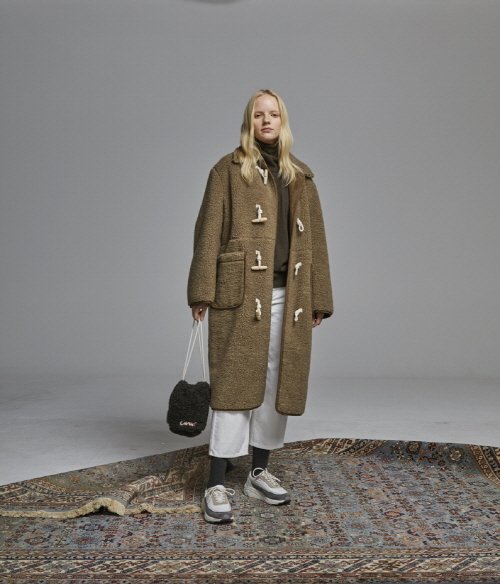 페이크 레더로 제작한 무스탕은 부드러운 터치감과 관리가 용이하며 툭 걸치는 것만으로 멋스러운 스타일을 연출할 수 있다.