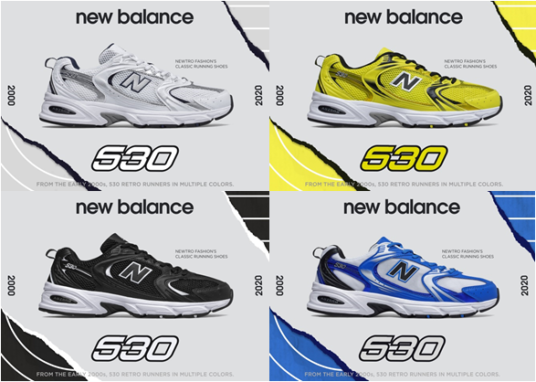 2020년 ‘MR530’은 멀티플 컬러가 가미된 실버, 형광, 화이트, 블랙 등 4가지 컬러의 제품으로 구성됐다. 밀레니엄 감성의 세련된 실버 베이스에 형광과 블랙을 조화롭게 액센트 컬러로 적용한 ‘MR530S’, 대디 OG 스타일에 화이트와 실버 컬러를 입혀 스로백(throwback) 뉴트로 감성을 담은 ‘MR530SG’, 흥미로운 형광톤에 검정 그라데이션이 적용된 ‘MR530SGE’, 모던 심플한 컬러에 샤이닝 블랙과 화이트가 가미돼 클래식한 멋을 풍기는 ‘MR530SD’이 있다.
