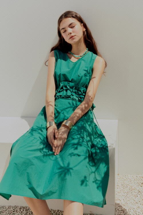 함께 선보이는 티어드 디자인의 캉캉 스커트 및 루즈핏 슬릿 팬츠와 코디하면 편하면서도 로맨틱한 썸머 스타일을 연출할 수 있다.