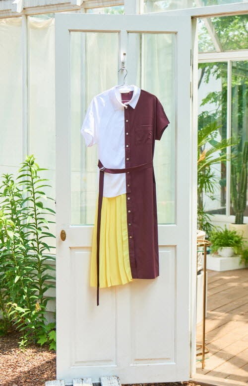 가볍고 시원한 소재의 ‘캐리스노트’ 썸머 원피스는 좌우 비대칭 디자인과 시원한 화이트, 산뜻한 옐로우, 그리고 고급스러운 브릭 컬러의 강렬한 색 조합이 특징이다. 슬림한 바디라인 연출이 가능한 A라인 실루엣으로 주름진 스커트 디자인 부분은 룩의 포인트가 되어 하나만 입어도 매력적이다.