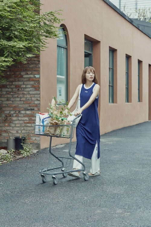 베이직한 컬러에 ‘휠라’ 테이피테잎 로고 디자인이 돋보이는 ‘인핏 라이프웨어 슬리브리스 롱 원피스’는 시그니처 컬러 중 하나인 네이비를 전반적으로 활용, 넥과 암홀 라인에 화이트 립 배색 포인트를 줬다. 고유 헤리티지가 돋보이는 아이템으로 트임 디자인을 활용해 활동감을 높였다. 민소매가 부담스럽다면 ‘인핏 라이프웨어 반팔 원피스’를 추천한다. 무릎 기장에 활용도 높은 네이비, 멜란지 그레이 두가지 컬러로 준비돼 데일리룩으로 손색이 없다. 두 제품 모두 3만 5000원.