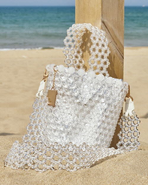 글라송 라인은 투명한 구슬을 사용해 청량감을 준 아이템이다. 크고 작은 구슬의 조합이 다채로운 패턴을 만들어 크래프트적인 요소와 레트로 감성을 느낄 수 있다. 토트백과 클러치 두 가지 디자인이며 내부의 실버백은 탈부착이 가능해 연출하는 방법에 따라 달라진다.