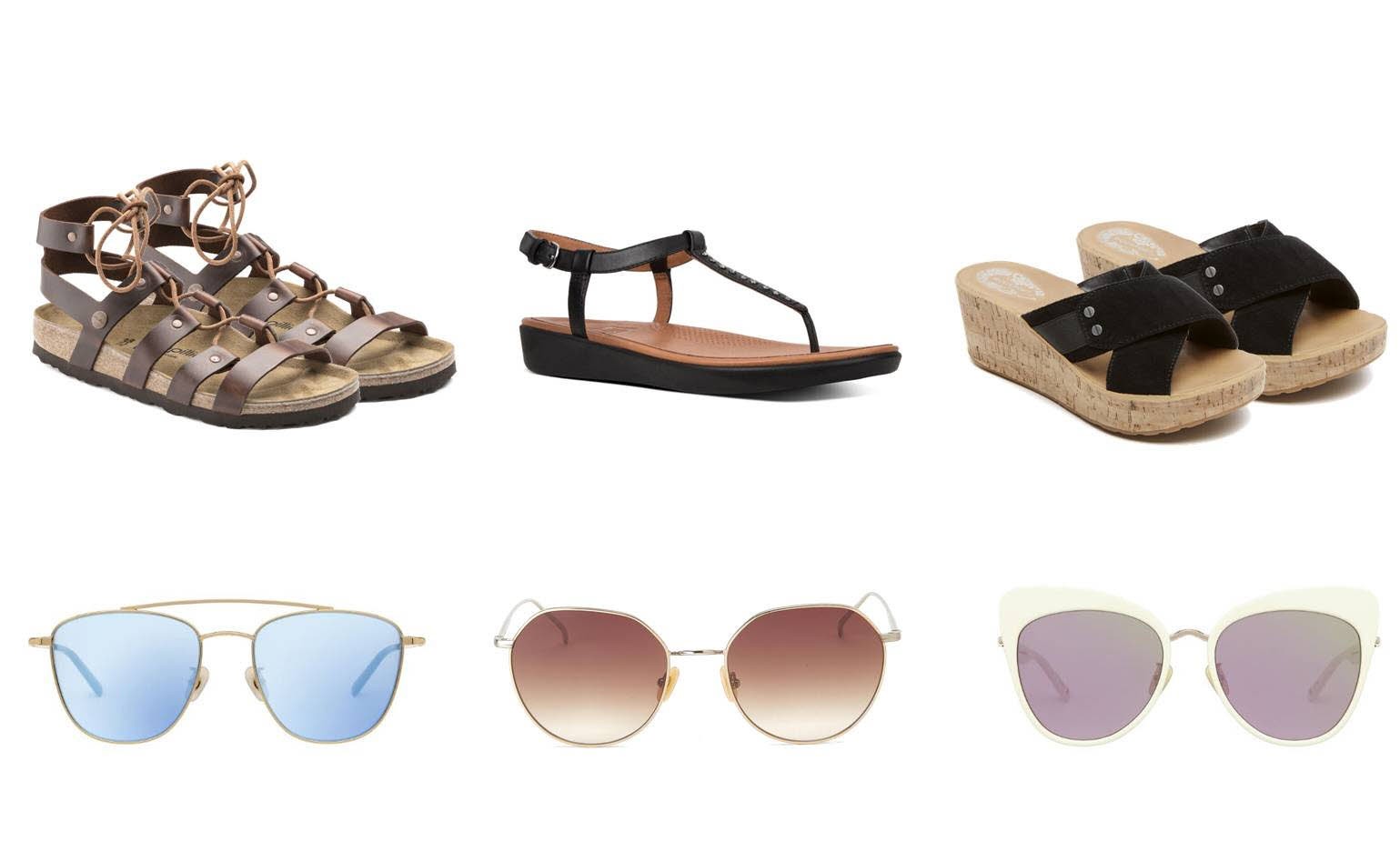 사진 제공: 글래디에이터 샌들 버켄스탁/ 쪼리 샌들 핏플랍/ 슬리퍼 락포트(/ 블루 틴트, 캣츠아이 선글라스 마노모스/ 브라운 틴트 선글라스 토니세임