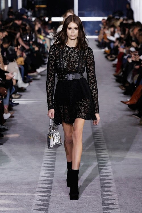 자수가 수놓아진 레이스와 얇은 울 면사로 이루어진 커다란 실크 드레스, 그리고 플리츠 스커트는 런웨이 위에서 파리지엥의 여성스러운 감각을 재현하였다. 이 의상들은 그래픽 프린트나 얼룩말 프린트가 새겨진 검정색 가죽 상의 그리고 구조적인 형태의 코트와 함께 매치되어 뉴욕의 세련된 감성을 보여주었다. 그리고 선명한 은색 스터드로 장식된 리본 장식과 같은 디테일은 락 감성과 엘레강스함을 완벽하게 조화시켰다. 이러한 대조적인 분위기, 텍스처의 믹스매치, 패턴과 실루엣은 각각의 룩에 개성과 역동성을 부여하였다.