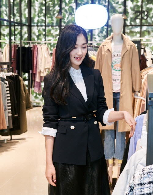 지난 18일 현대백화점 무역센터점 ‘듀엘(DEWL)’ 매장을 방문한 배우 김혜윤은 봄기운이 물씬 느껴지는 화사한 핑크색 의상을 입어 시선을 사로잡았다.