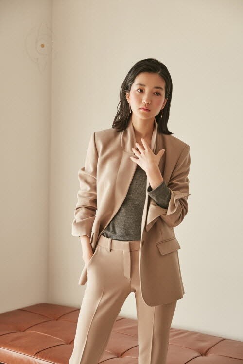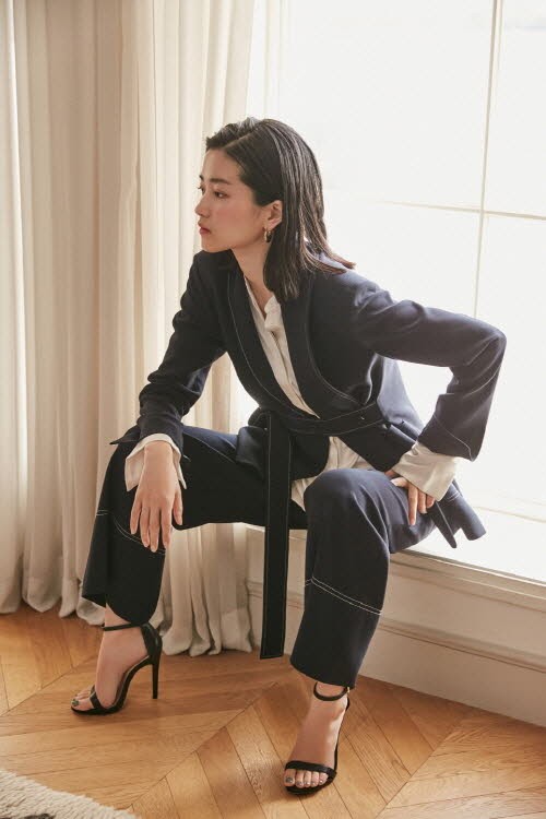 이번 화보에서 김태리가 착용한 모든 팬츠와 수트는 ‘프론트로우’가 자체 소싱한 원단에 특허 받은 입체 패턴 공법을 접목하여 탄생한 브랜드의 오리지널 라인, 드라마컬렉션의 시그니처 아이템이다.