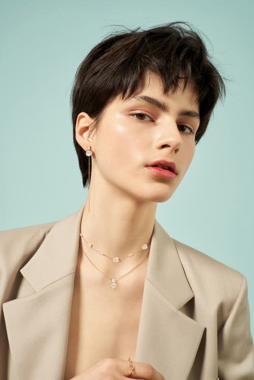 화보 속 주얼리는 19SS 시즌 쟈뎅 드 뤼미에르 컬렉션으로 시간의 흐름에 따라 텍스쳐가 변화하며 점차 빛의 깊이감이 느껴지는 르브리에(Le Briller) 스톤이 돋보이는 스페셜한 라인으로 유니크한 디테일에 시간과 계절의 흐름에 따라 더욱 매력적으로 변해가는 ‘러브캣비쥬’만의 감성을 담은 컬렉션이다.