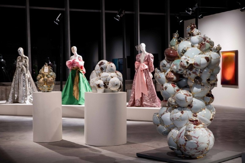 피엘파올로 피춀리가 메종의 아카이브, 그리고 ‘발렌티노 오브 그레이스&라이트’ ‘발렌티노 코드 템포럴’ ‘발렌티노 액트 컬렉션’을 포함해 동시대 오트 쿠틔르 및 컬렉션에서 엄선한 드레스는 보나베리사 마네킹에 걸쳐 전시한다. 이 유동적인 영역에 잠식된 드레스는 창작자와의 관계, 개별 작품과의 균형을 생성하는 순간 다양한 밀도의 존재감과 집중도를 표출한다.
