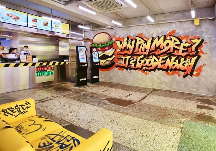 신세계푸드의 노브랜드 버거는 부산을 대표하는 핵심상권이자 트렌드 변화에 민감한 젊은 층이 즐겨 찾는 서면에 기존 매장과 차별화된 빈티지 컨셉의 매장을 신규 오픈했다. 지하 1층, 지상 3층 규모로 조성된 노브랜드 버거 서면점은 단순히 버거를 즐기는 외식 매장으로서의 역할을 넘어 고객들에게 새로운 경험과 즐거움을 제공하는 복합 콘셉트 스토어로 꾸며졌다. 빈티지한 벽돌로 된 건물 외벽을 브랜드 컬러인 노란색으로 뒤덮어 멀리서도 한눈에 띌 수 있도록 했다. 각 층마다 테마에 따른 그래피티, 인테리어 소재, 조형물 등을 다양하게 활용해 이색적인 분위기에서 노브랜드 버거를 즐길 수 있도록 구성되었으며 버거를 주문하는 1층 벽면에는 ‘WHY PAY MORE? IT’S GOOD ENOUGH’를 대형 그래피티로 넣어 가성비를 내세운 노브랜드의 자신감이 느껴지도록 했다.