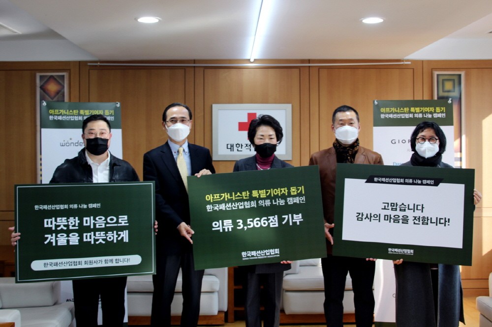 한국패션산업협회(회장 한준석)26일 대한적십자사 서울사무소에 아프가니스탄 특별기여자를 위한 의류 나눔 캠페인을 통해 기부된 의류 3,566점을 전달했다.