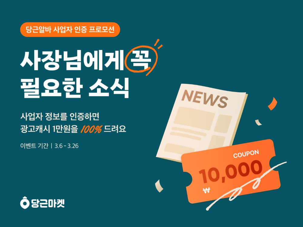 당근마켓(대표 김용현 황도연)이 지역 기반 구인구직 서비스 당근알바를 이용 중이거나 앞으로 활용하게 될 사장님들을 대상으로 사업자 인증 프로모션을 실시한다.